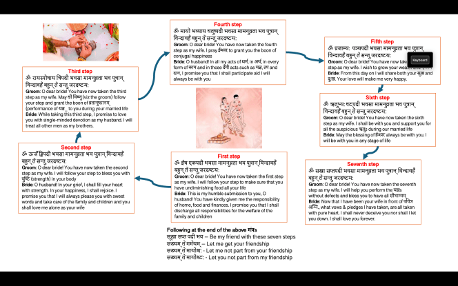 - With each of the seven steps, a particular मंत्र is decided and blessings of श्री विष्णु are sought. And at each step, the following vows are taken: